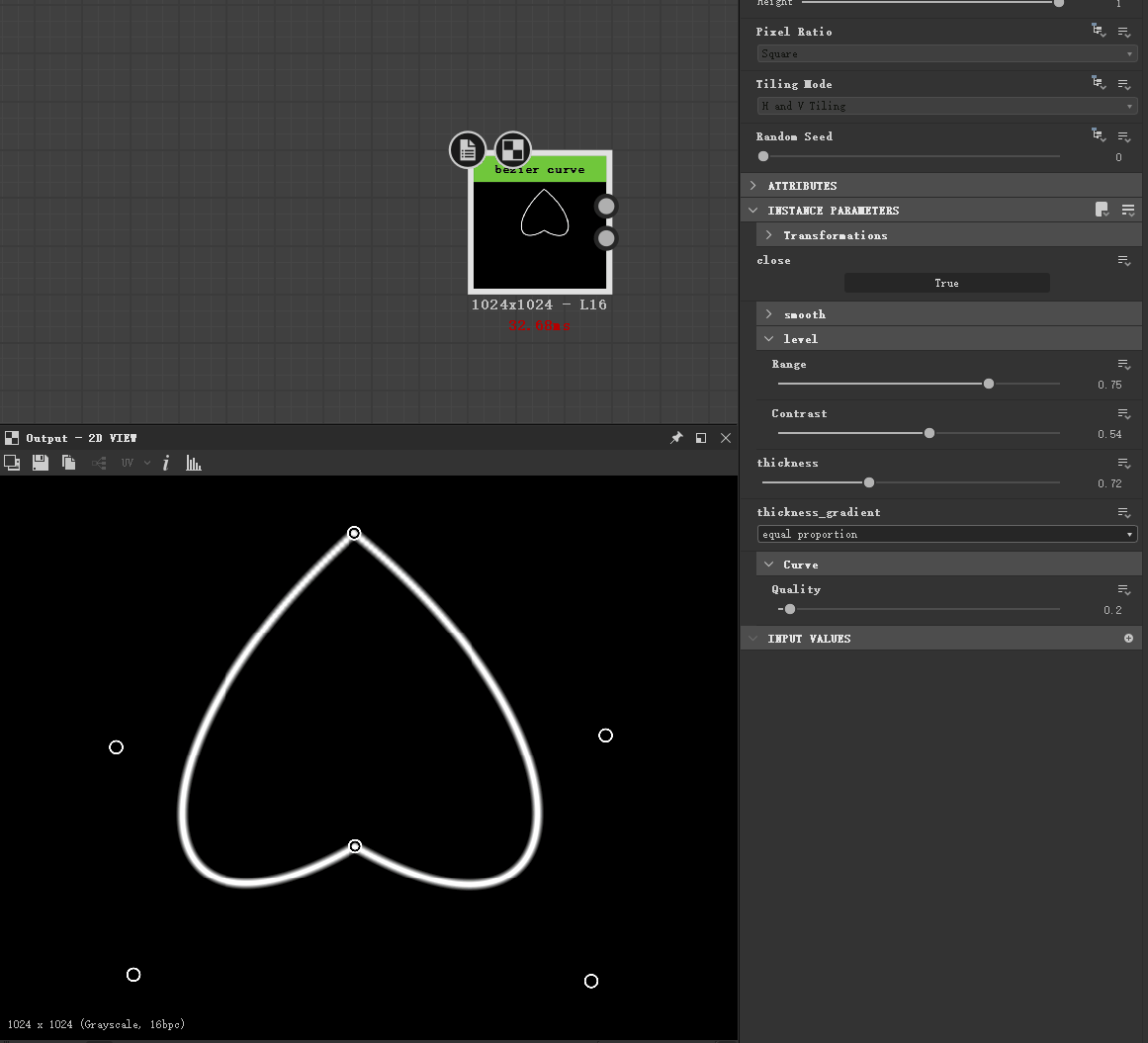 Create a petal node, adjust the position, copy the node and connect it to the input, adjust the curvature position, you can get the effect of petal folding