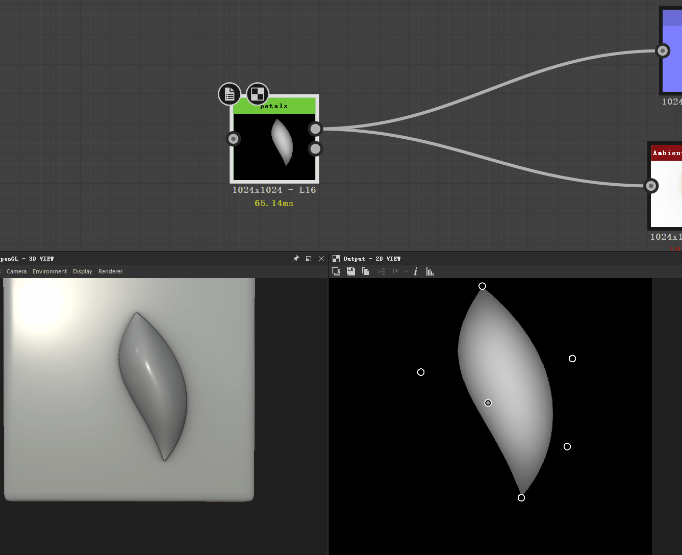 Create a petal node, adjust the position, copy the node and connect it to the input, adjust the curvature position, you can get the effect of petal folding